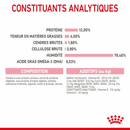 Les sachets repas mousse Royal Canin Cat Kitten sont spu00e9cialement conu00e7us pour les chatons jusqu’u00e0 l’u00e2ge de 12 mois.