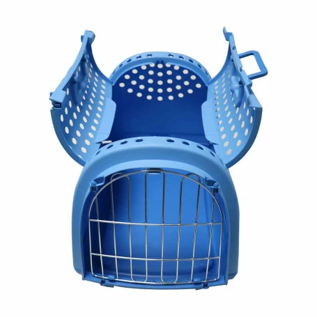 Caisse de transport en plastique haute qualitu00e9 pour petits chiens et chats, spu00e9cialement adaptu00e9e aux chats gru00e2ce u00e0 son ouverture supplu00e9mentaire sur le dessus.
