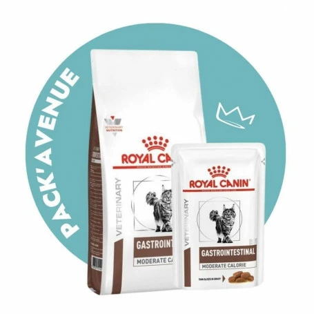 Du00e9couvrez le Pack Royal Canin Cat gastro Intestinal Moderate Calorie avec une alimentation adaptu00e9e aux chats adultes et seniors souffrants de troubles gastro-intestinaux ou sujets u00e0 l’embonpoint.
